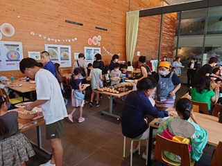 待ちに待った久しぶりの大規模対面企画として「夏休み企画♡みんな大好き!スイーツビュッフェ♡」が龍谷大学瀬田キャンパスで開催されました。滋賀県内のみならず、京都や大阪からも申込があり、最終的には60名近い参加者を得て大盛況でした。事前の準備や当日のお菓子作りにはスマイルシードのスタッフだけではなく、管理栄養士を目指す龍谷大学食品栄養学科の学生7名もボランティアで参加。食品表示の見方などアレルギーっ子の注意点についてのお話を聞いた後、みんなで計19メニューのアレルギー対応お菓子を楽しみました。カラフル蒸しパンやガトーショコラなど、普段ならアレルギーを気にして食べられないものをこの日だけは何の心配もなく好きなだけ食べることができ、みんな大喜びでした。